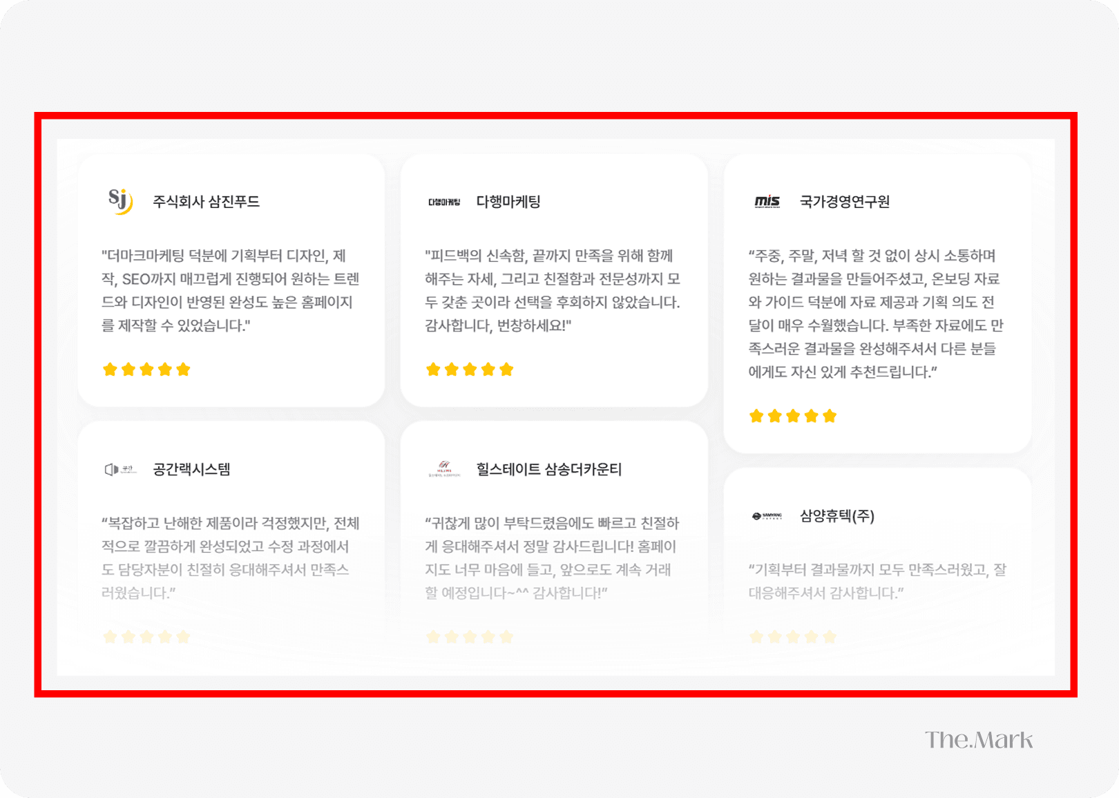 예를 들어, 제품을 판매하는 랜딩페이지라면 제품 후기와 고객사 로고 등을 추가하면 신뢰도가 상승합니다.