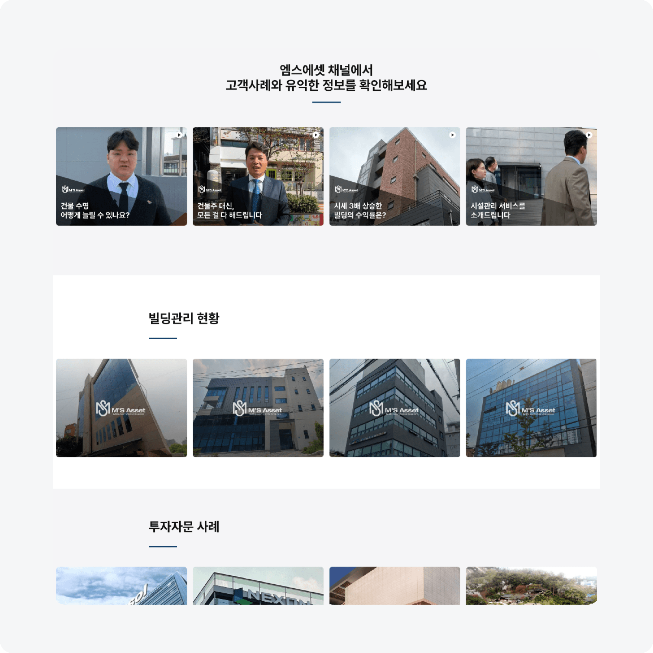 MSAsset 엠스에셋의 자산관리 전문성을 돋보이게 한 홈페이지 리뉴얼 사례. 브랜드 신뢰도 강화, 정보 탐색 최적화, 고객 문의 증대를 중심으로 성공적인 리뉴얼을 완성했습니다.