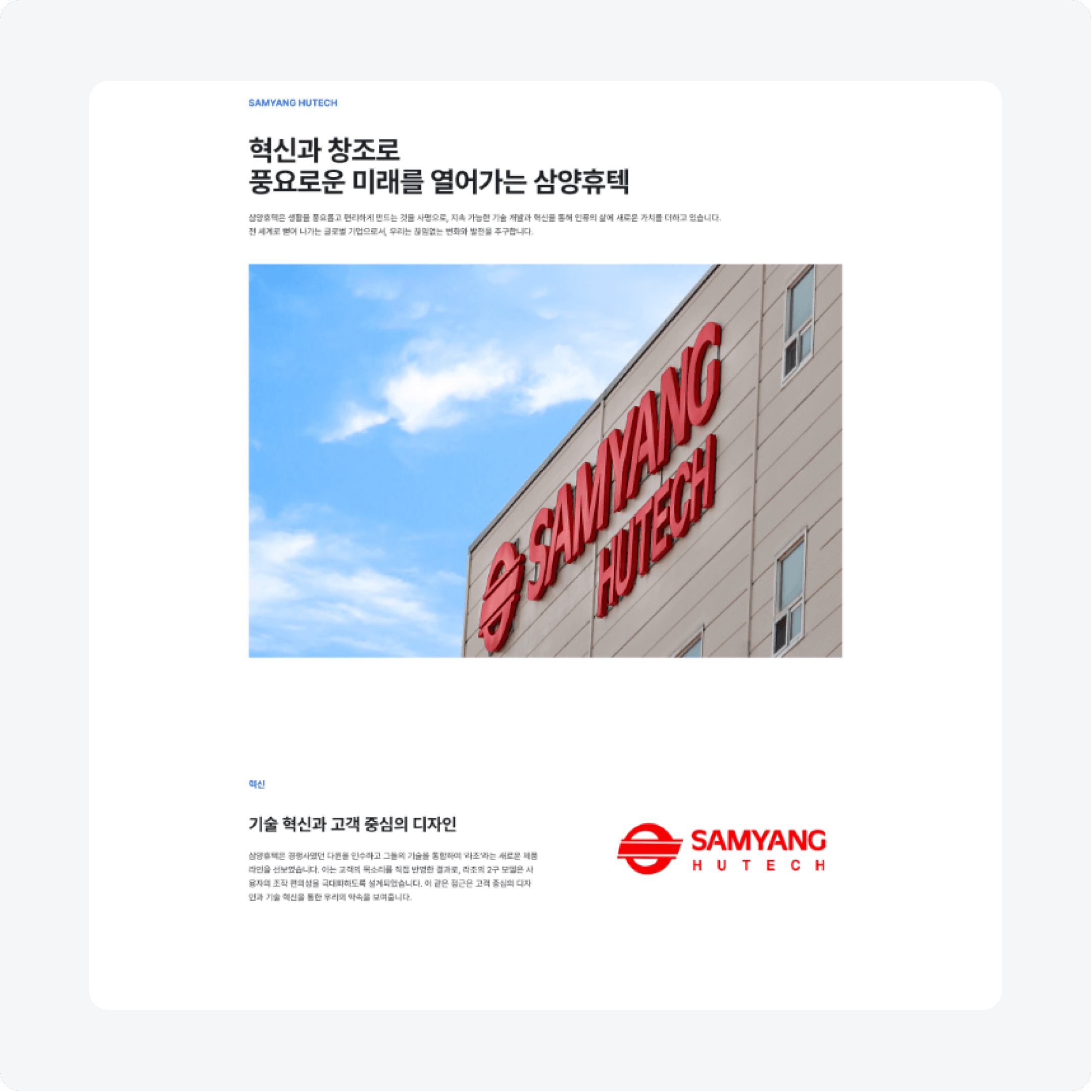 삼양휴텍 홈페이지 리뉴얼로 브랜드 신뢰도를 강화하고, 직관적인 UX/UI 설계와 반응형 디자인을 통해 고객 경험을 한층 업그레이드한 성공 사례를 소개합니다.
